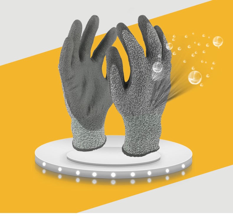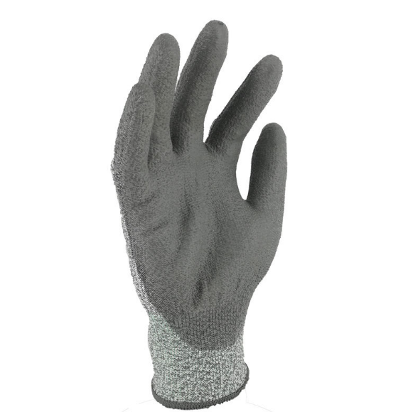 - Găng được phủ lớp PU ở lòng bàn tay để tạo độ bám khi cầm nắm. Lớp PU cũng có khả năng kháng dầu nên người dùng vẫn có thể sử dụng găng tay bảo hộ cấp độ 5 đế tiếp xúc với các vật dụng dính ít dầu.