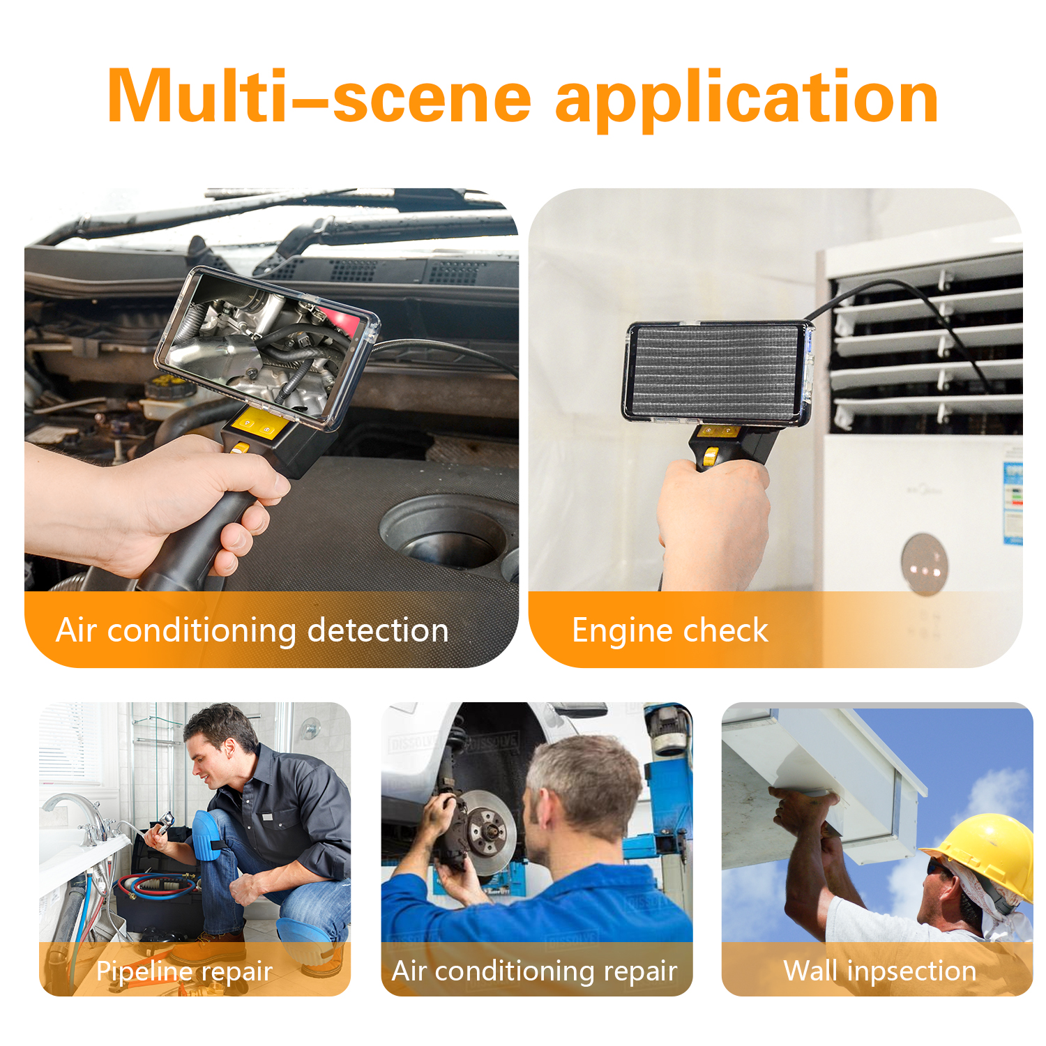 Đầu kèn ống soi: 6 Đèn LED trắng, tiêu cự của camera là 2-8cm.