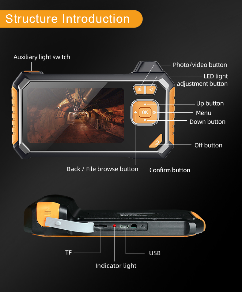 Chống thấm nước: Có thể được sử dụng dưới nước: Camera kiểm tra chống nước được làm bằng vật liệu chống thấm nước IP67, cho phép máy ảnh thực hiện công việc kiểm tra dưới nước.