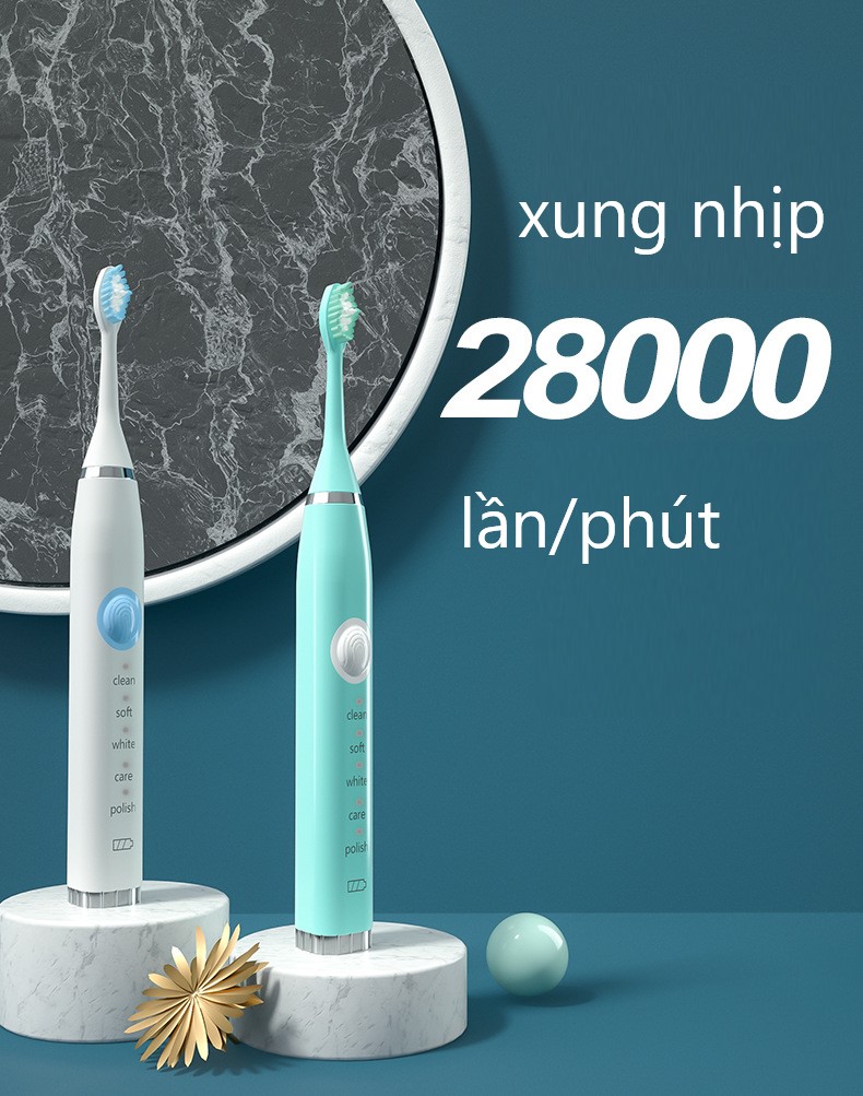 Bàn chải đánh răng điện Sonic được trang bị động cơ mạnh mẽ cùng với công nghệ sóng âm thanh rung ở tần số cao lên đến lên đến 28.000 lần mỗi phút không chỉ làm sạch bề mặt răng trong thời gian ngắn mà còn an toàn với nướu, giúp người dùng tiết kiệm thời gian hơn. Nhanh chóng làm sạch vệ sinh khoang miệng. Bàn chải vận hành tự động trong khoảng 2 phút (thời gian tiêu chuẩn), sau mỗi 30s sẽ dừng để báo thay đổi vị trí đánh. Sau 2p thiết bị sẽ dừng để tiết kiệm pin cũng như đảm bảo độ bền.