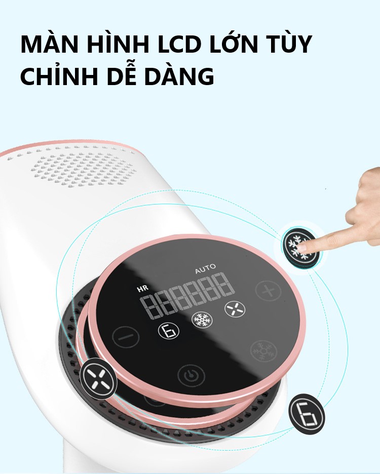 Trên thân máy được tích hợp màn hình hiển thị giúp quý khách hàng có thể điều khiển và lựa chọn chế độ hiển thị. Đặc biệt, màn hình sử dụng là màn hình cảm ứng đa điểm, hiện đại, dễ dàng sử dụng. Máy triệt lông xung lạnh 360 độ ICE COOL chính là dòng máy đi tiên phong trong việc áp dụng công nghệ 4.0.