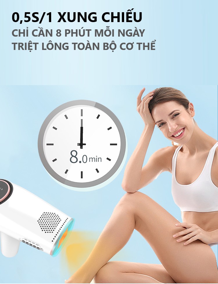 Với số lượng xung lên đến 600.000, bạn có thể sử dụng trong thời gian 8 năm. Kết hợp với đó, công nghệ hàng đầu cho phép người dùng loại bỏ được vùng lông không muốn và có được làn da mịn màng, tránh tình trạng lông mọc lại.