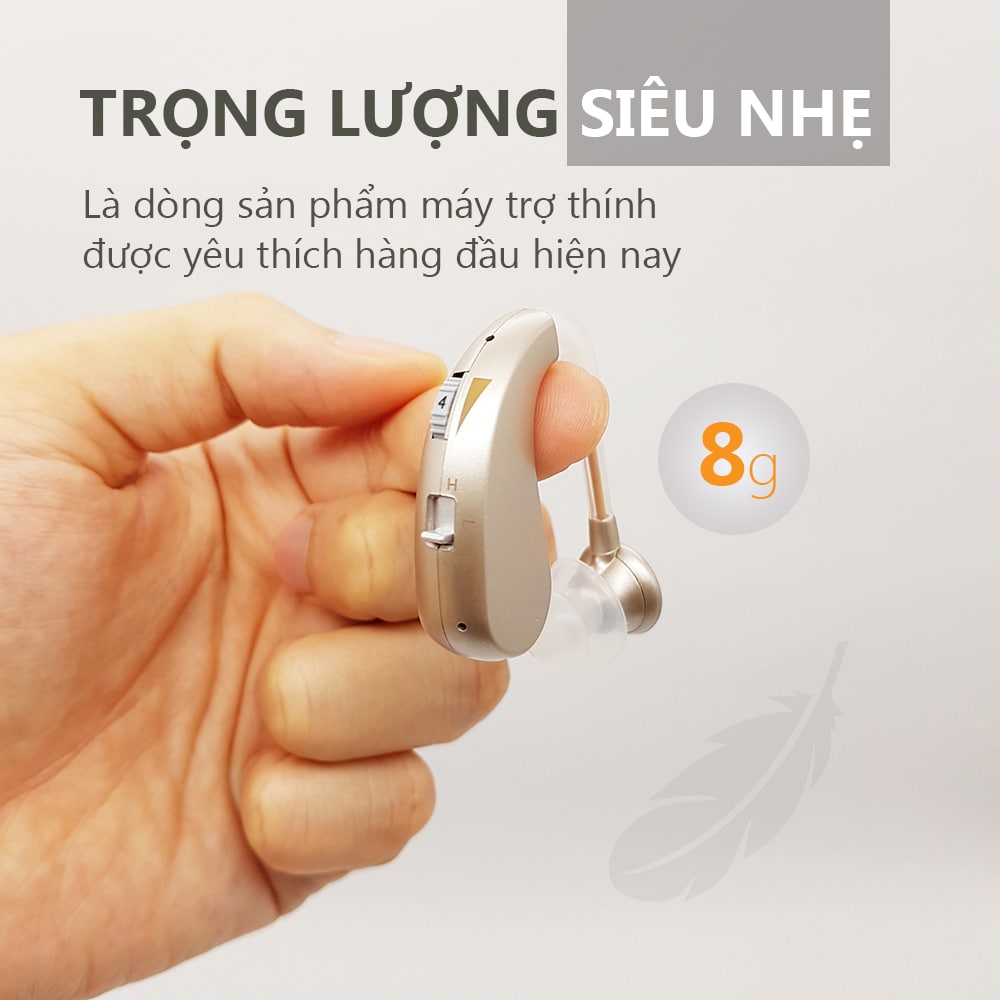 Sản phẩm sử dụng công nghệ không dây hoàn toàn mới với thiết kế siêu nhỏ, kiểu dáng hiện đại, sang trọng. Nhờ đó mà đây trở thành máy trợ thính đeo vành tai được nhiều người ưu tiên lựa chọn và sử dụng hơn cả.