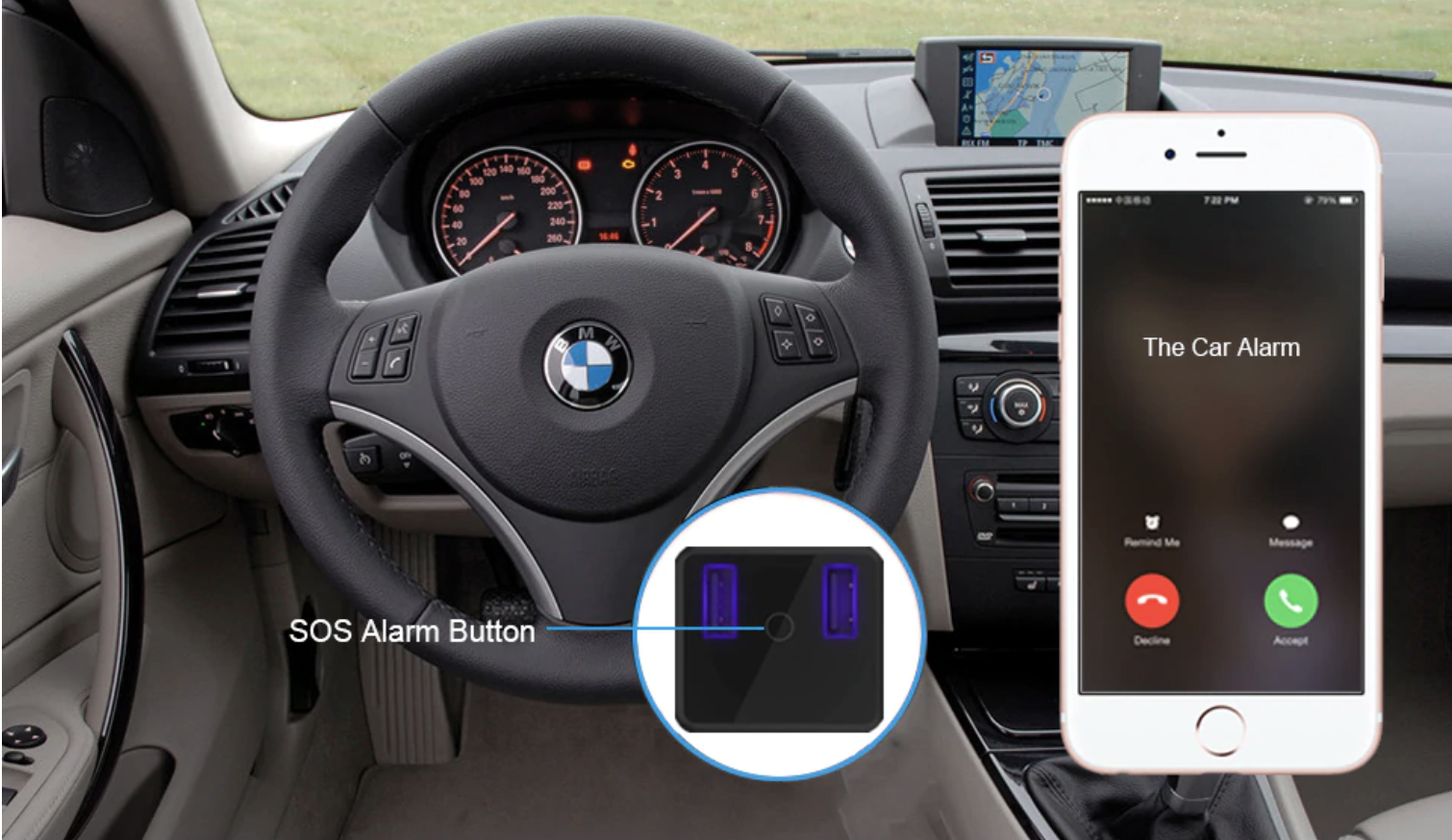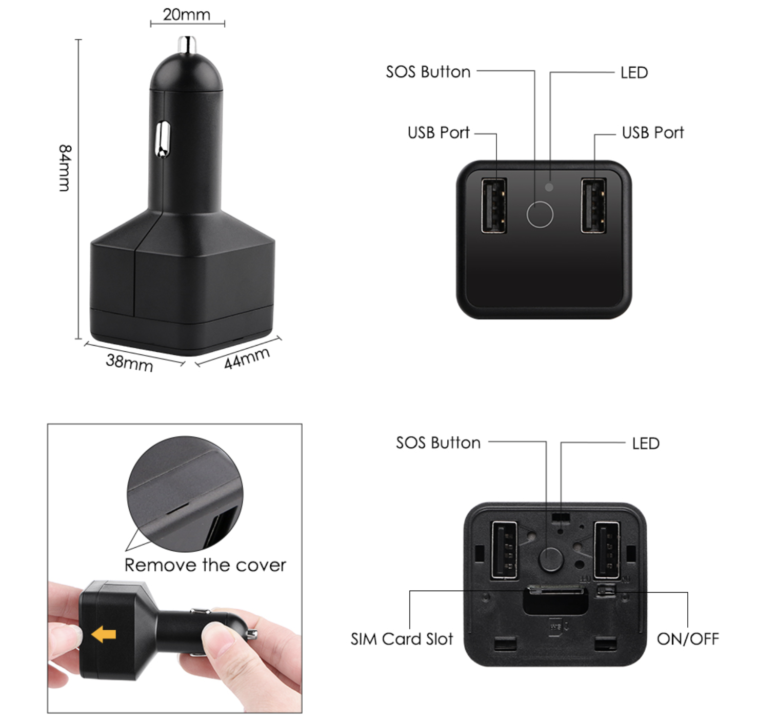 Thiết bị định vị sạc tẩu điện có nút bấm SOS giúp người dùng có thể nhấn và thiết bị sẽ gửi cảnh báo về 3 số SOS được cài đặt trước trong những trường hợp khẩn cấp.