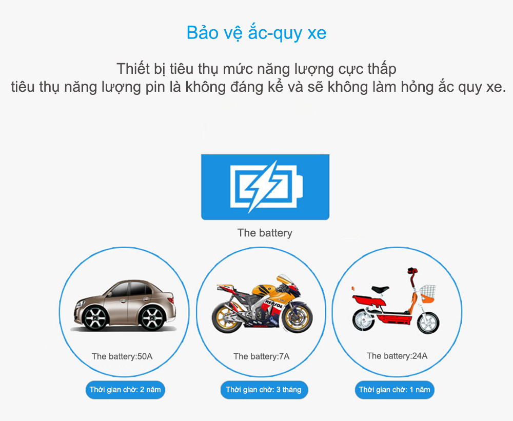 Định vị A2 có mức tiêu thụ điện năng cực thấp giúp Bảo Vệ Acquy xe của bạn. Một số định vị kém chất lượng sẽ làm hỏng bình Acquy của bạn rất nhanh vì chúng tiêu thụ điện năng quá nhiều.
