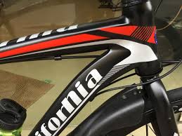 Sườn xe là tem in và logo của nhà sản xuất được thiết kế cách điệu, phối màu trẻ trung hơn. Chỉ nhìn qua sẽ thấy xe đạp thể thao của California như một chiến mã sẵn sàng đưa bạn đến những trải nghiệm địa hinh thú vị.